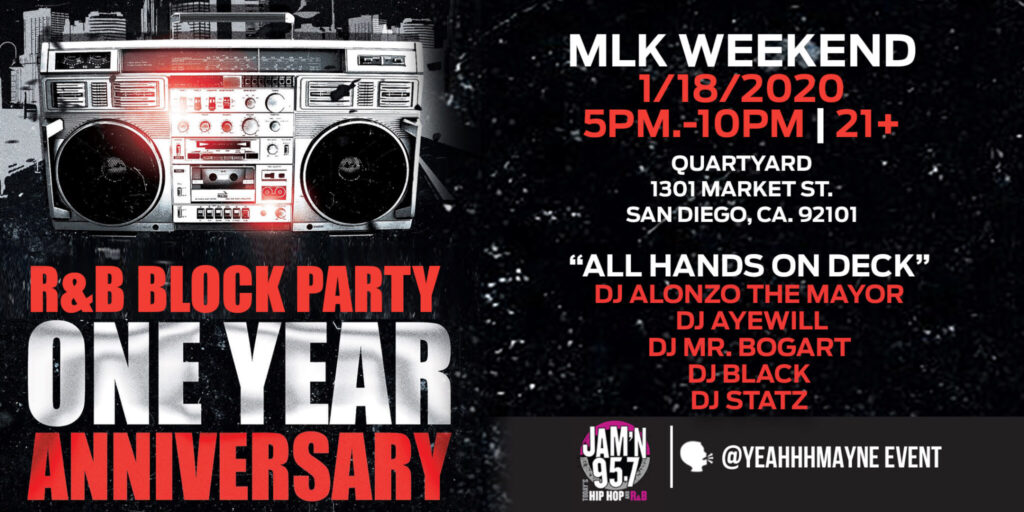 Every DJ you've ever seen at the R&B Block Party in 2019 will be here! And please welcome 95.7 Radio as they will be making a special appearance at #YourCityBlock. They'll be playing the jamz that you just don't get in the club no more... 90's & Early 2000's and some of today's hits that make you feel like you're back in the day.